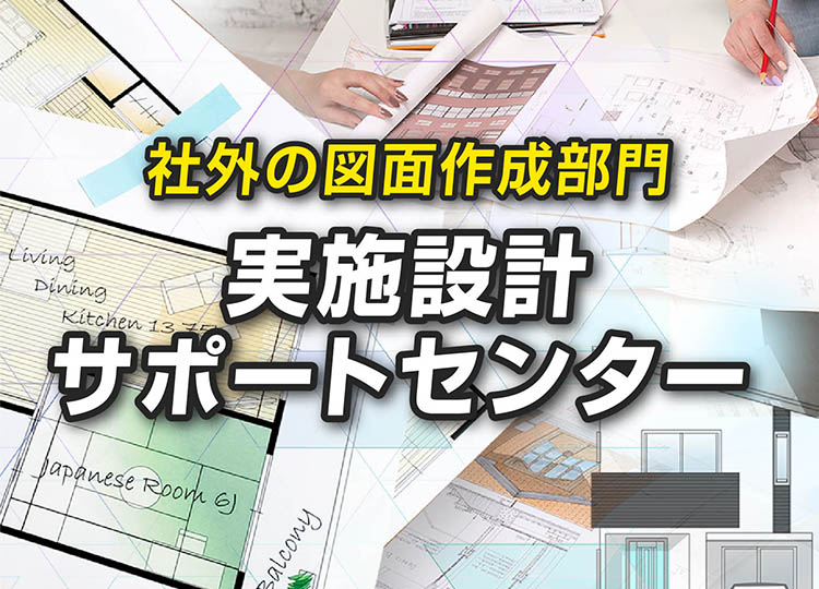 人手不足や業務過多でお悩みの建築設計事務所・工務店・ハウスメーカー・ゼネコン設計部の皆さまに向けて、実施設計サポートセンターでは、社外設計部・設計補助部門として建築図面作成をサポートしています。